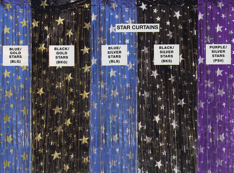 Available in Black w/ Silver Stars, Black w/ Gold Stars or Blue w/ Silver Stars. Plastic or paper table covers also available.