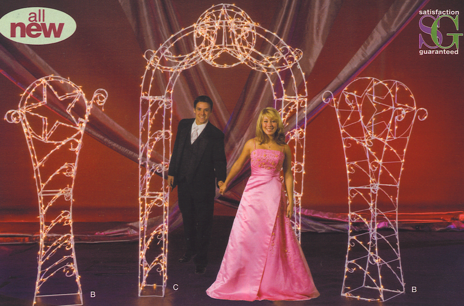 Accent your walk-though with a variety of fabric (oval metal arch is $329) as seen in the example to the right for a stunning effect.