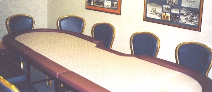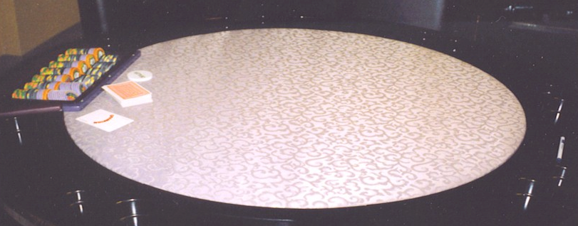unclear but people used to play poker on ordinary wood tables. Interesting History of Poker.