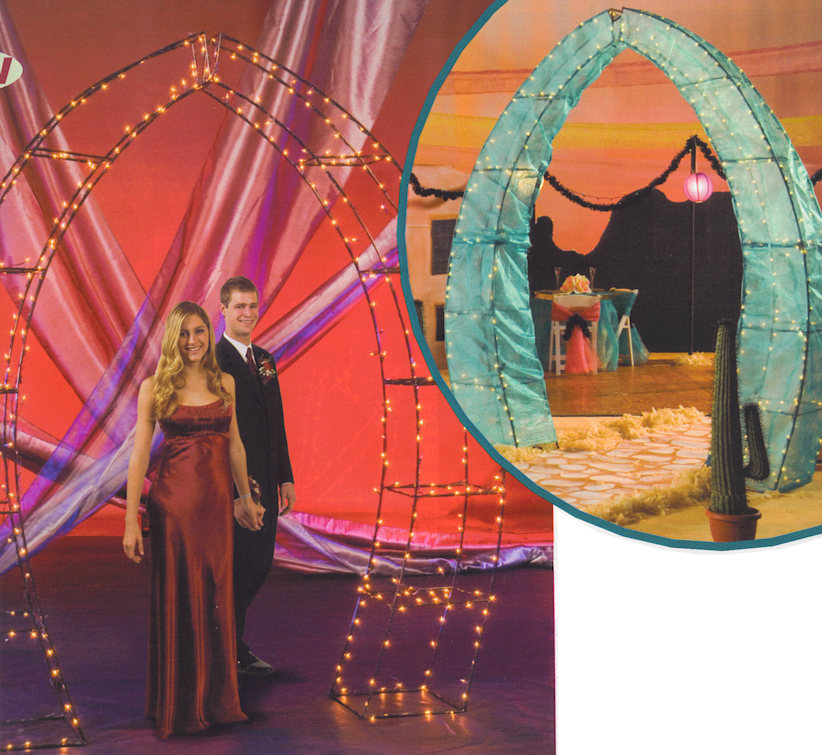 Accent your walk-though with a variety of fabric (oval metal arch is $329) as seen in the example to the right for a stunning effect.